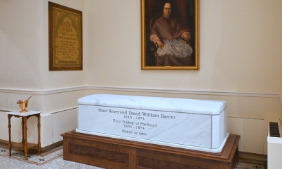 Father Bapst, along with Father Anthony Chiampi, SJ, played crucial roles in the building up of the St. Gabriel’s Catholic community. This included securing land in the lower village for a new church. Construction began in 1853, the same year that the Diocese of Portland was established, and was completed the following year. Although services were held there beginning in 1854, it would be another 22 years before Bishop James Healy, the second bishop of Portland, traveled there to bless it.